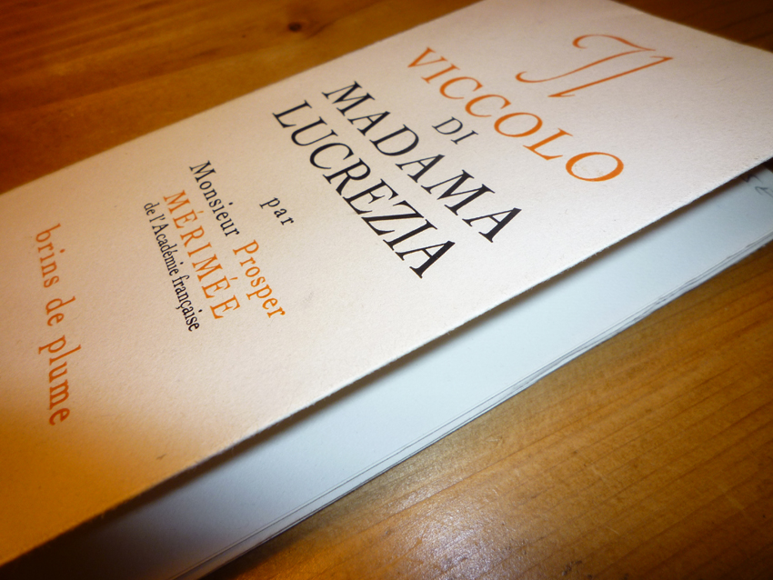 Prosper Mérimée (1803-1870). Il viccolo di Madama Lucrezia (1846). Maximilien Vox, 1944. (Brins de plume ; 2). P. 21.